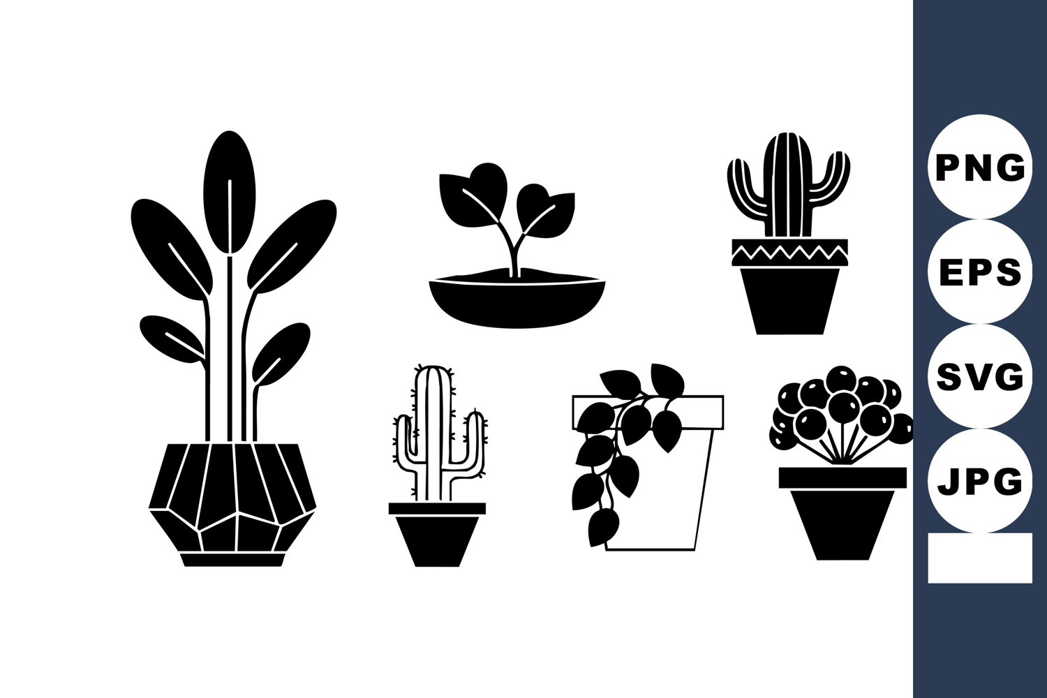 Black Silhouette Vector Icons Potted Plants Cacti example image 1