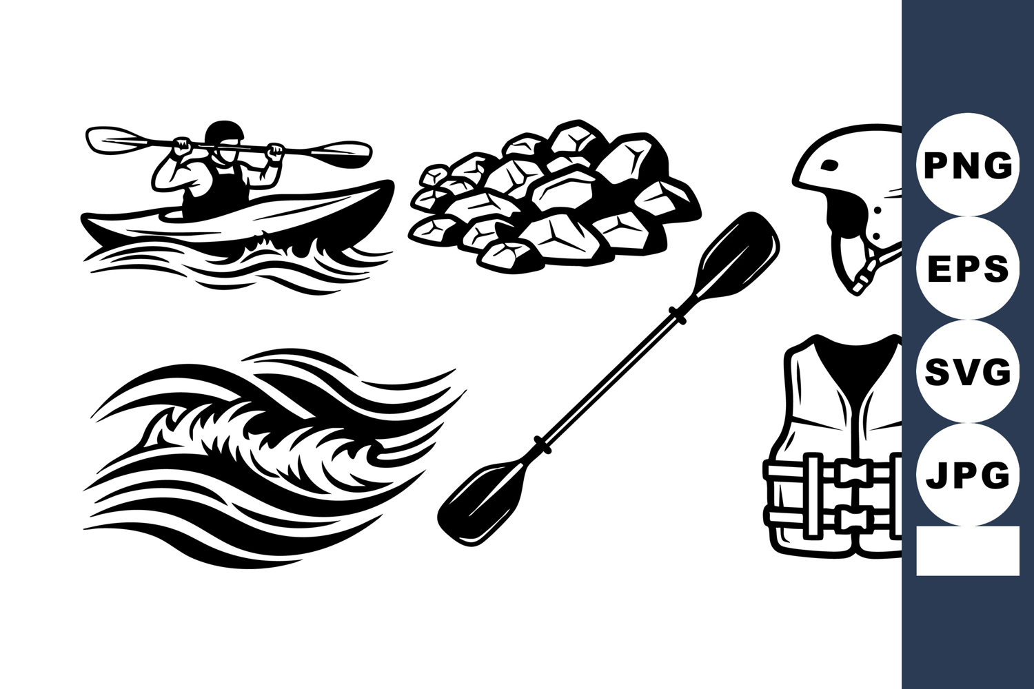 Kayaking Gear Water Wave Silhouette Vector Set example image 1