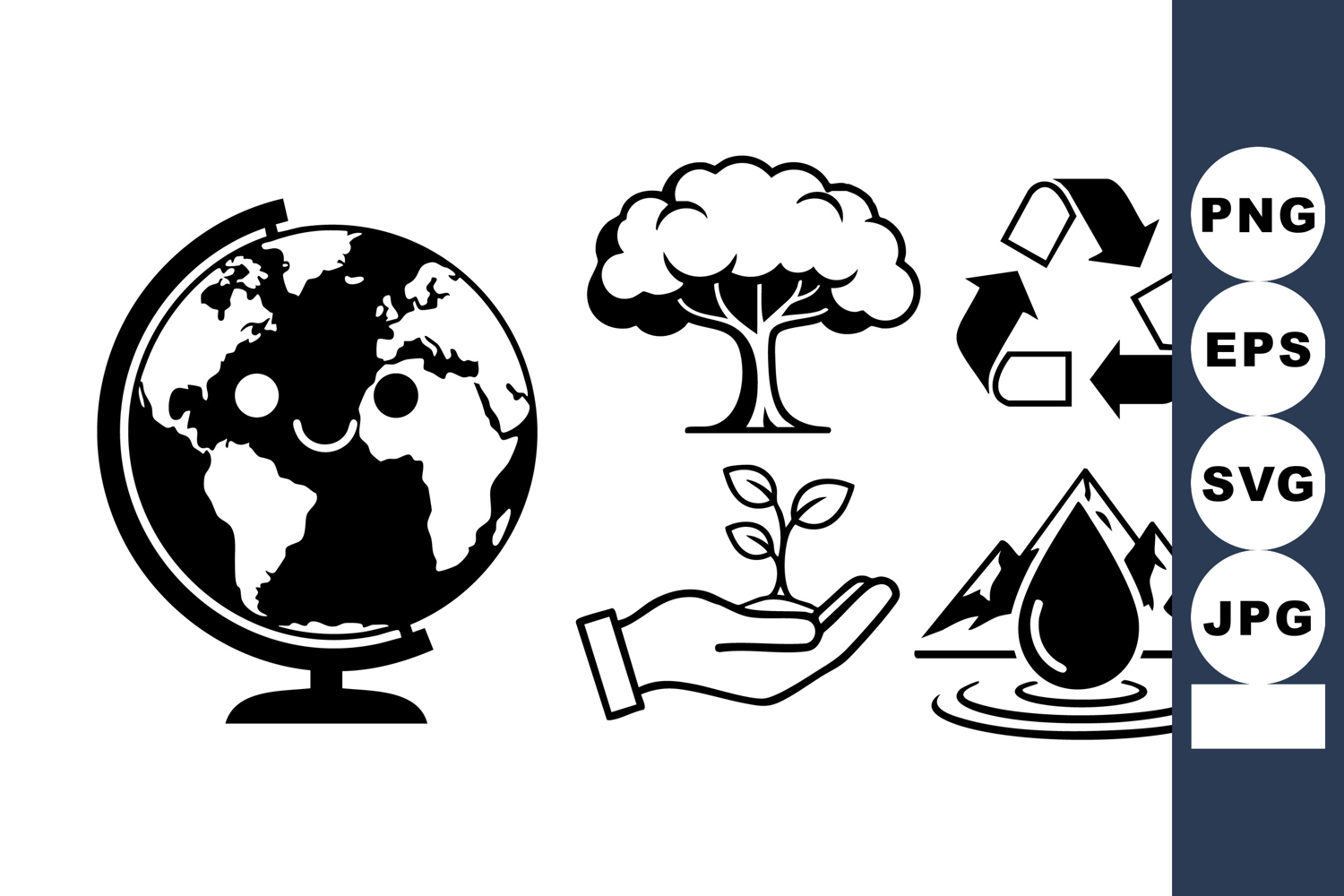 Environmental Icons Globe Tree Water Drop Recycling example image 1