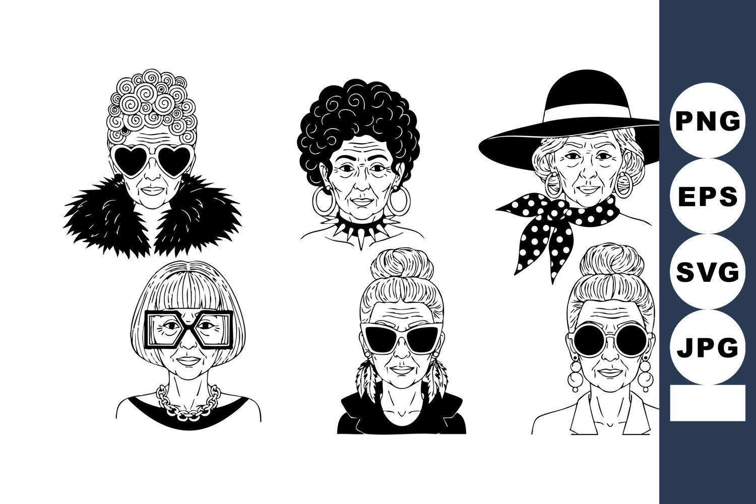 Stylish Elderly Women Portrait Illustration Collection example image 1