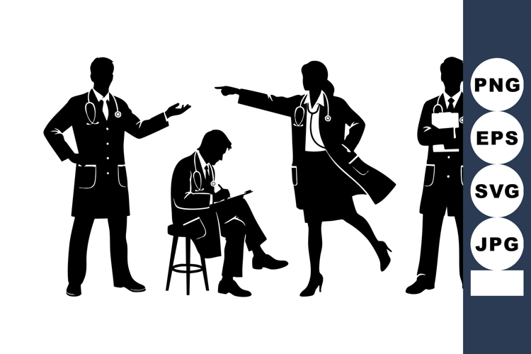 Medical Doctors Silhouette Doctors With Stethoscopes Healthcare Professional Poses Medical Consultation Teamwork Professional Healthcare Environment Doctors Standing Sitting Doctor Patient Consultation Healthcare Worker Silhouette Medical Staff Teamwork Doctors Writing Notes