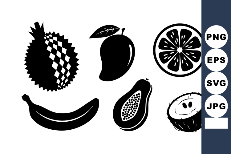 Fresh Tropical Fruit Bold Black Silhouettes Tropical Fruits Vector Black Silhouette Fruit Durian Mango Orange Banana Papaya Coconut Healthy Tropical Fruits Sweet Juicy Fruit Organic Tropical Fruit Exotic Tropical Fruits