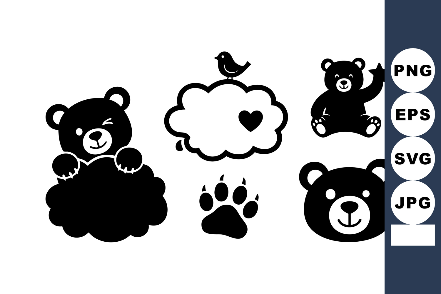Teddy Bear Silhouette Set Cloud Bird Paw example image 1