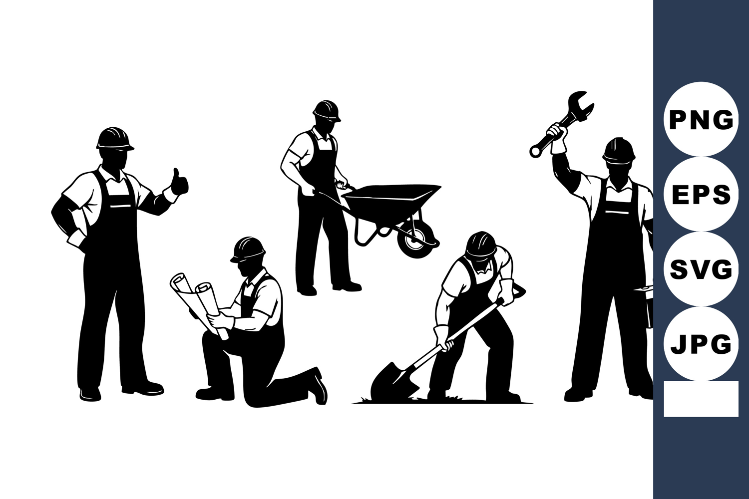 Construction Worker Silhouettes With Tools Equipment example image 1