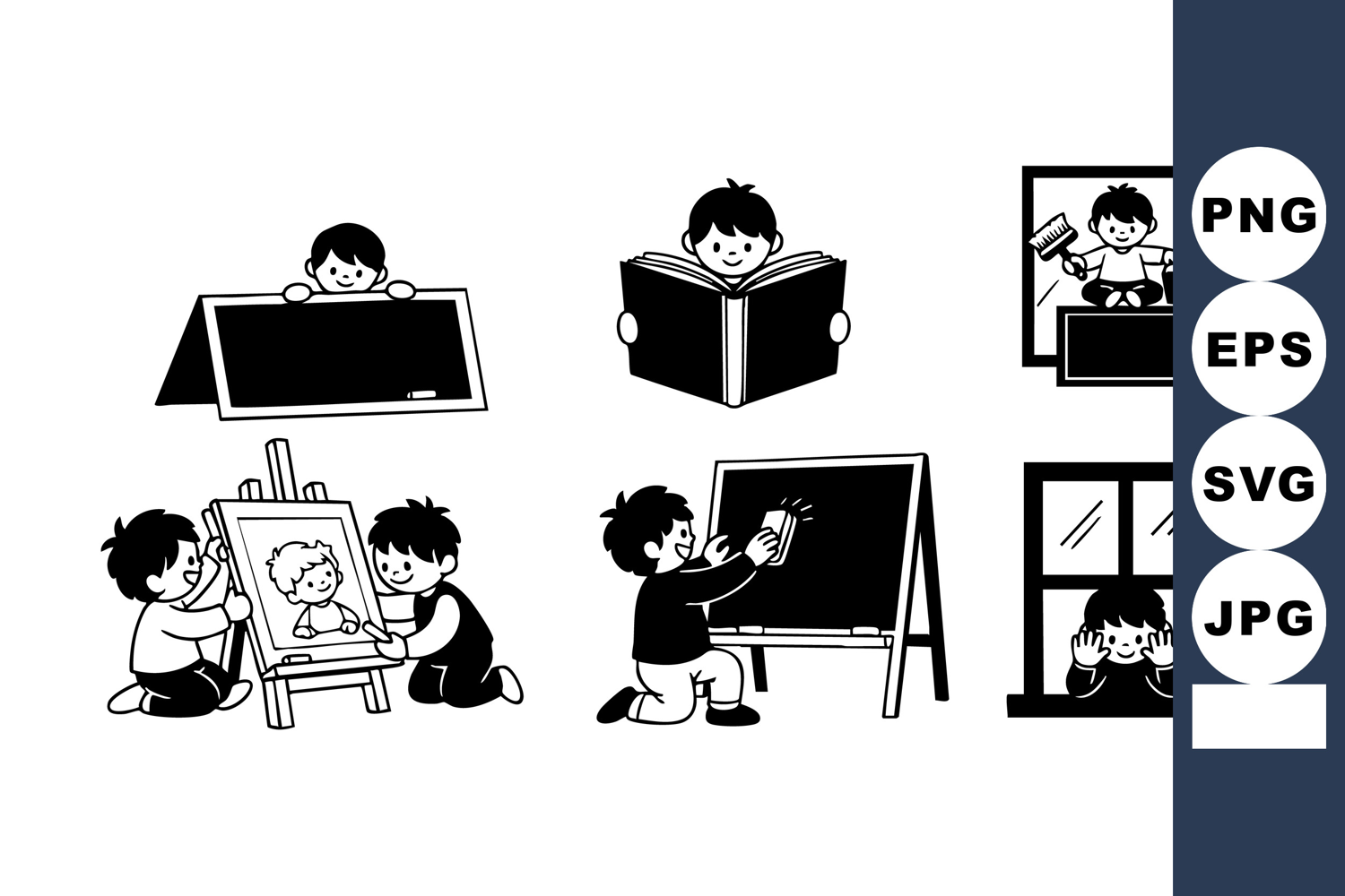 Children Learning Playing Drawing Reading Cleaning Vector example image 1