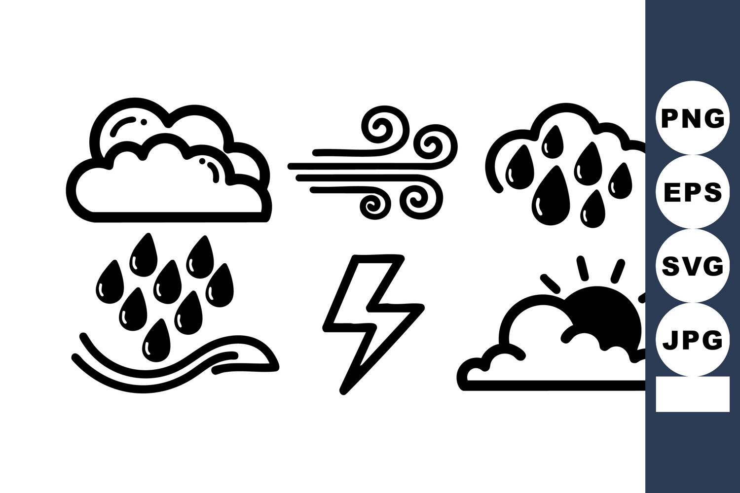 Weather Icons Cloud Rain Wind Lightning Sun Vector