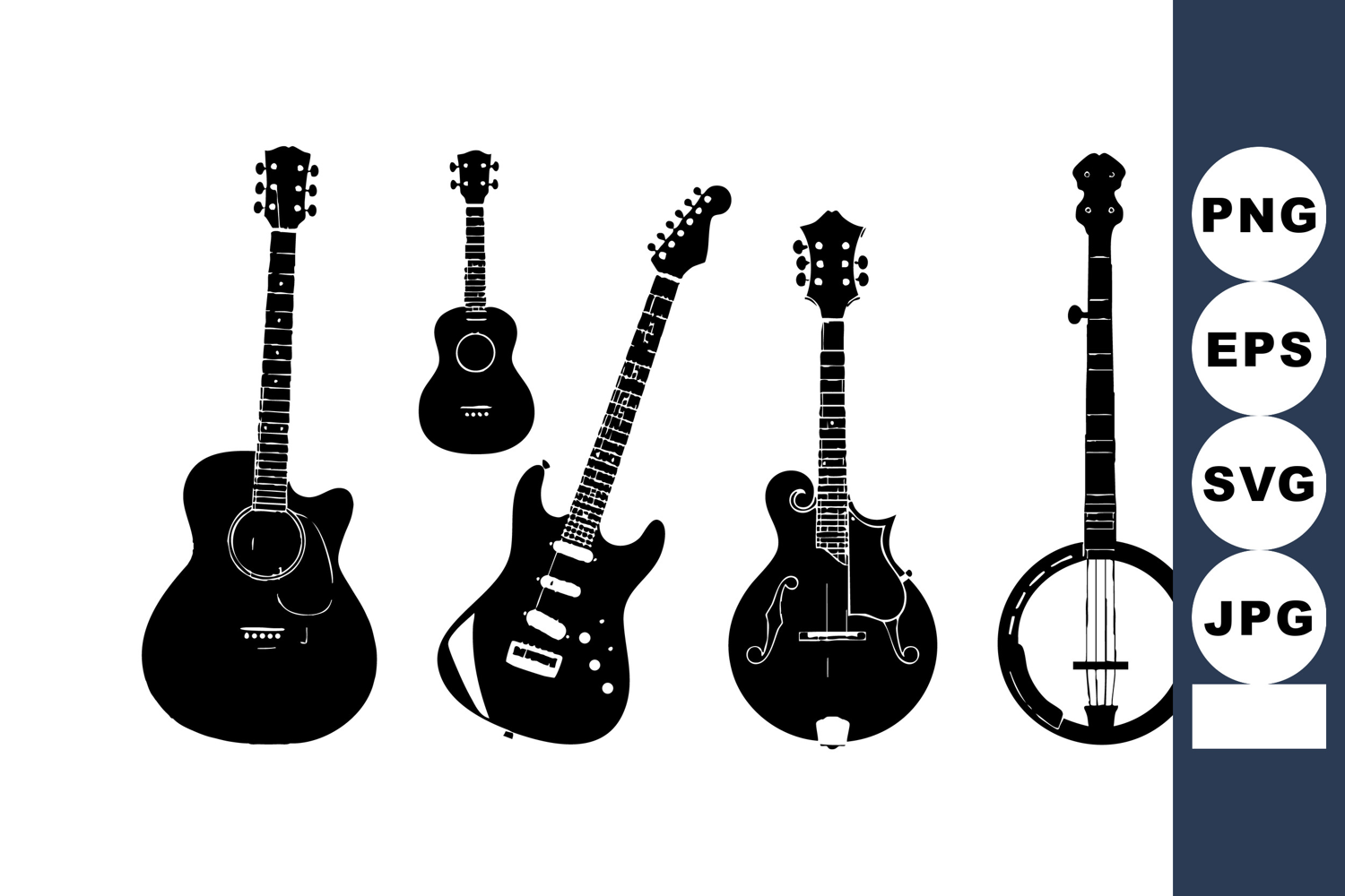 Silhouette Vector Set Acoustic Guitar Ukulele Mandolin Banjo example image 1