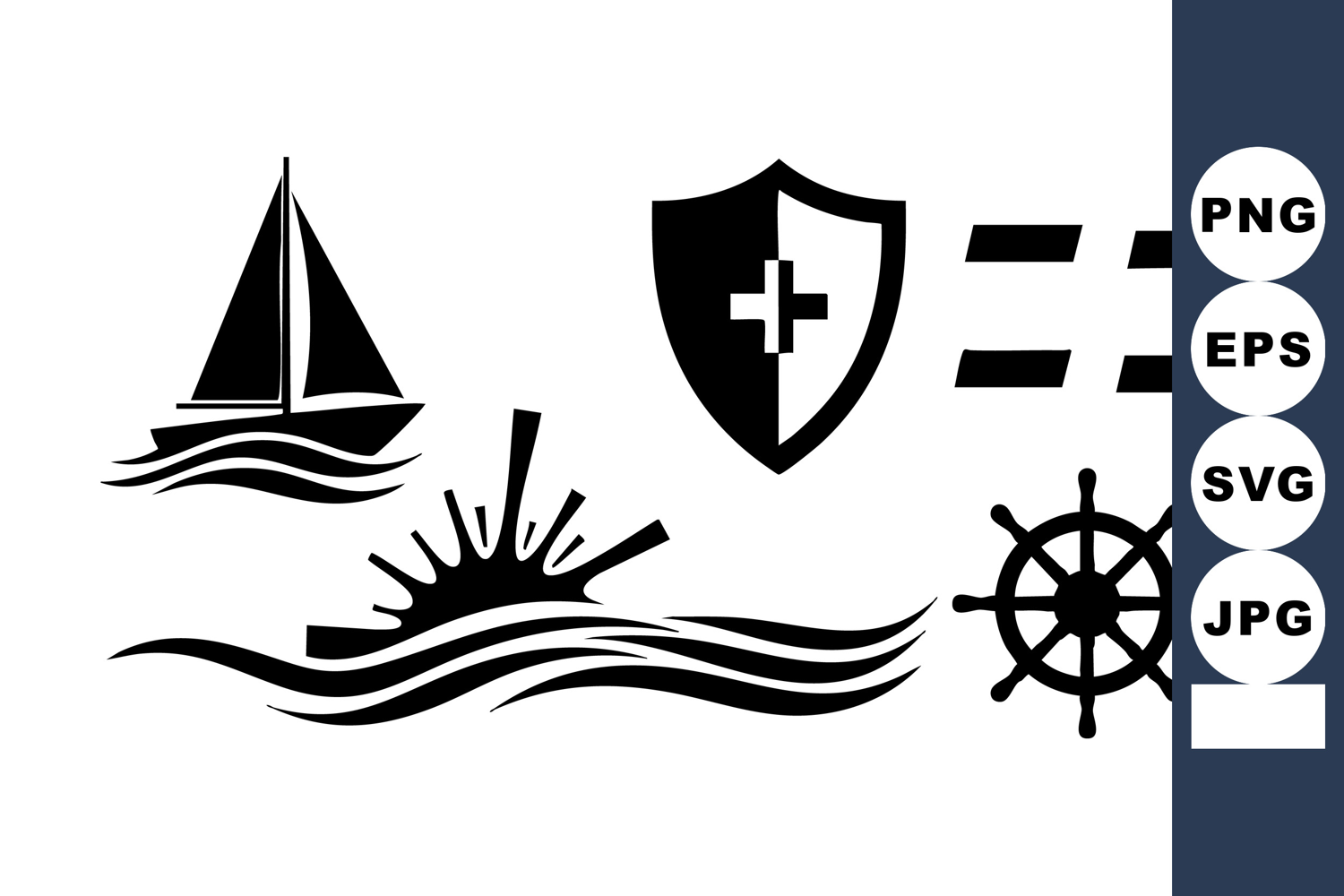 Nautical Symbols Sailboat Sun Shield Ship Wheel Icons example image 1