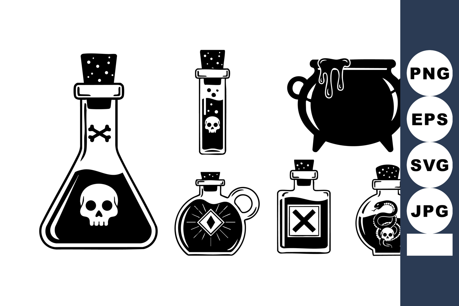 Vector Illustration Black Poison Bottles Cauldron example image 1