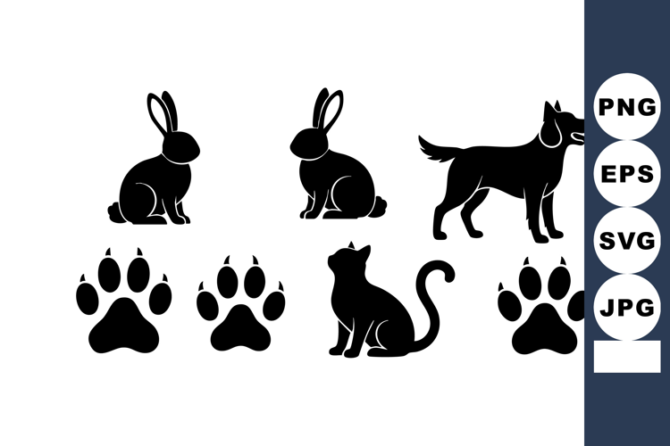 Black Silhouette Rabbit Dog Cat Paw Prints Vector example image 1