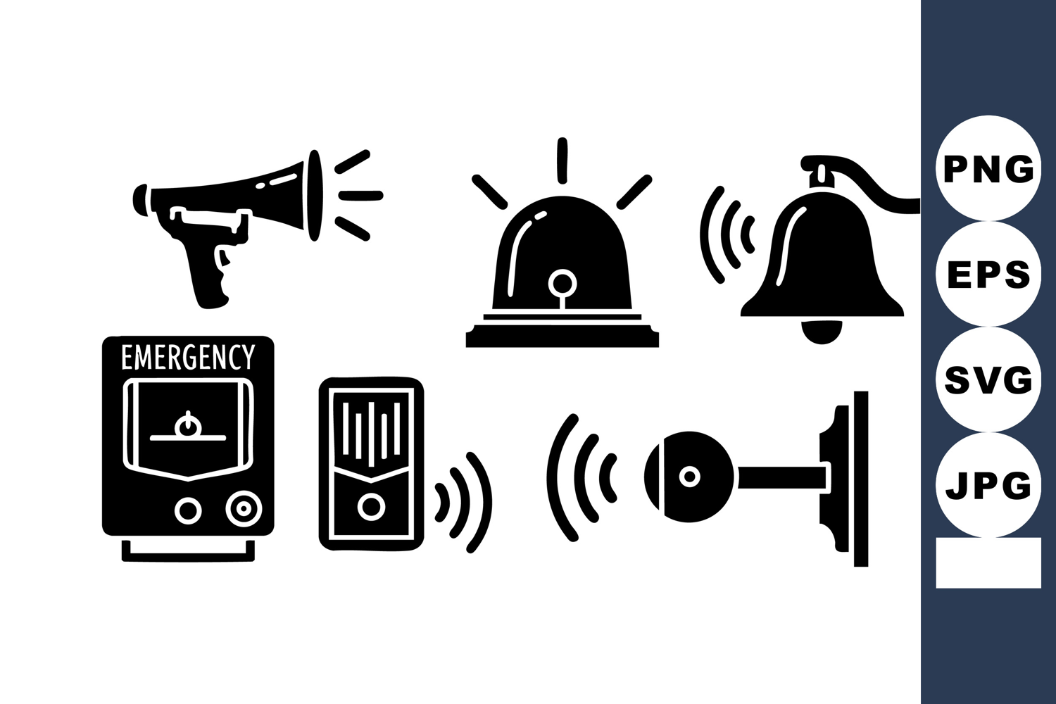 Emergency Alarm Siren Bell Megaphone Icons Vector Set example image 1