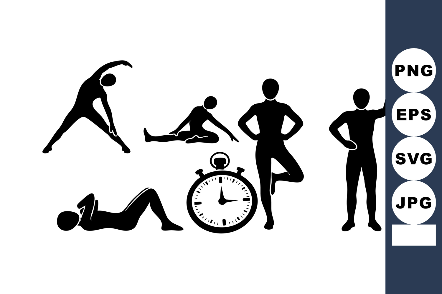 Silhouette Figures Stretching Measuring Stopwatch Vector example image 1