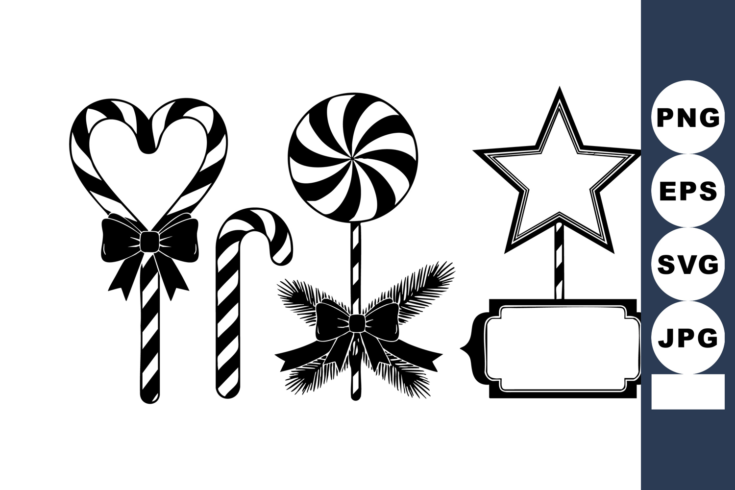 Merry Christmas Card Christmas Candy Cane Candy Cane Bow Striped Candy Cane Holiday Design Vector Black White Style Holiday Celebration Design Pine Branch Bow Star Sign Label Classic Candy Cane