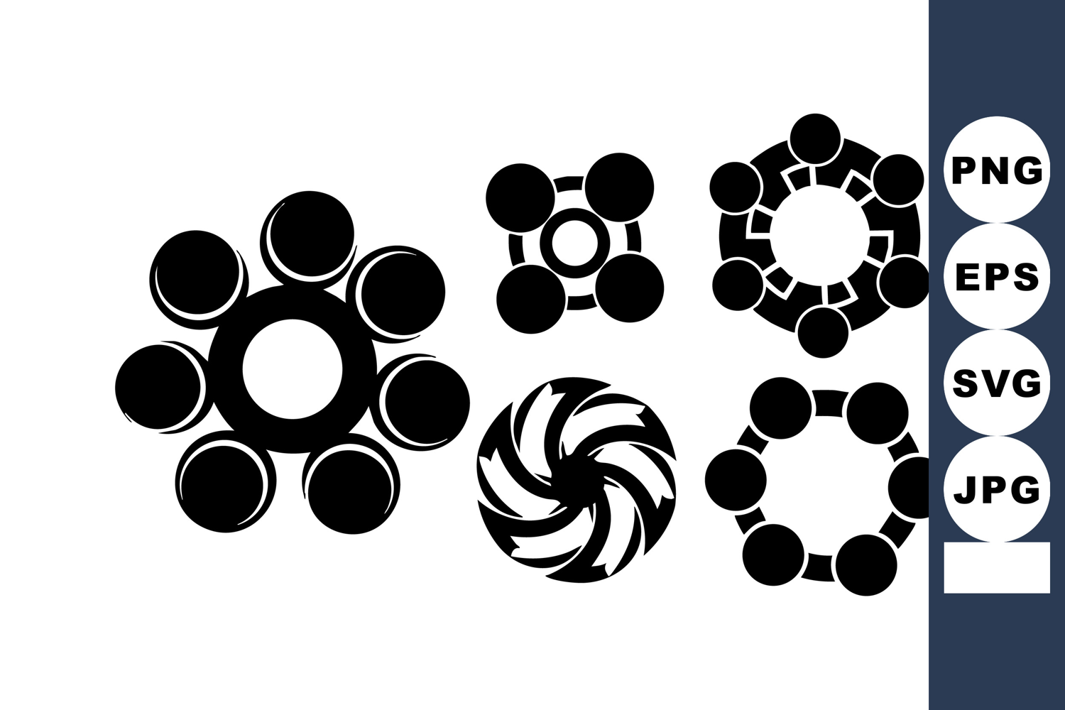 A collection of abstract circular shapes featuring rings and dots arranged in unique patterns suitable for modern design projects and creative branding, minimalist and bold style