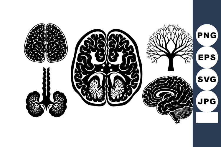 Black and White Brain and Tree Silhouette Vector Set example image 1