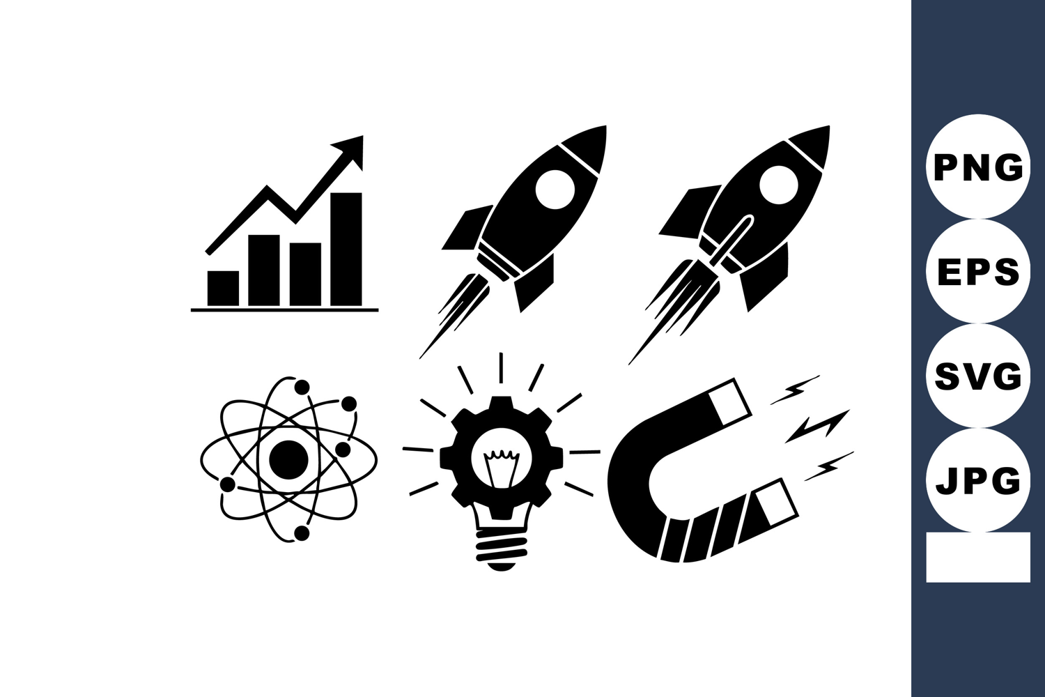 Rocket Growth Chart Atom Light Bulb Magnet Icons Set example image 1