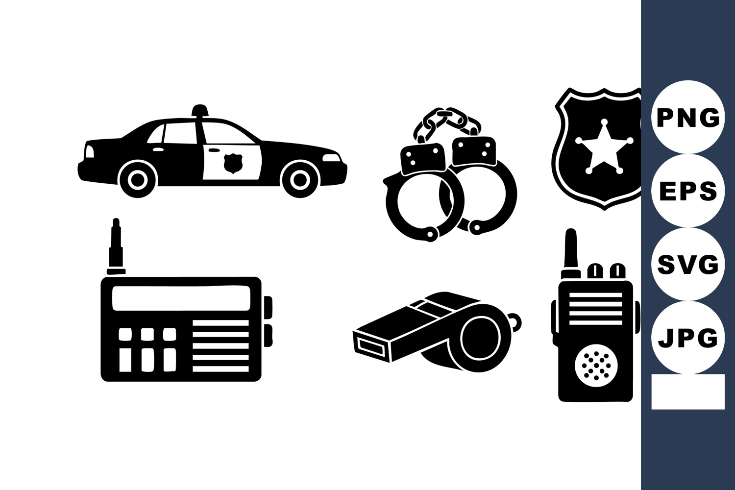 Police Car Handcuffs Badge Radio Whistle Walkie Talkie Icons example image 1