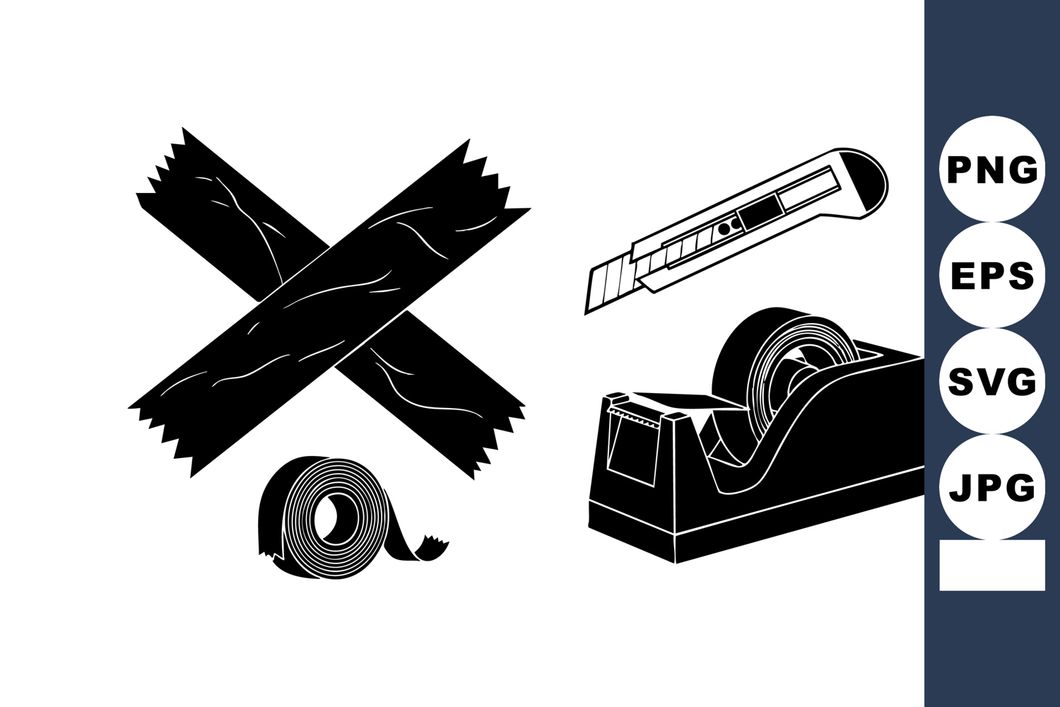 Black Silhouette Design Office Supply Tool Adhesive Tape Roll Packing Tape Cutter Tape Dispenser Roll Minimalistic Style Edgy Tape Roll Texture Box Sealing Tape Tape Dispenser Utility Packaging Tape Rolls