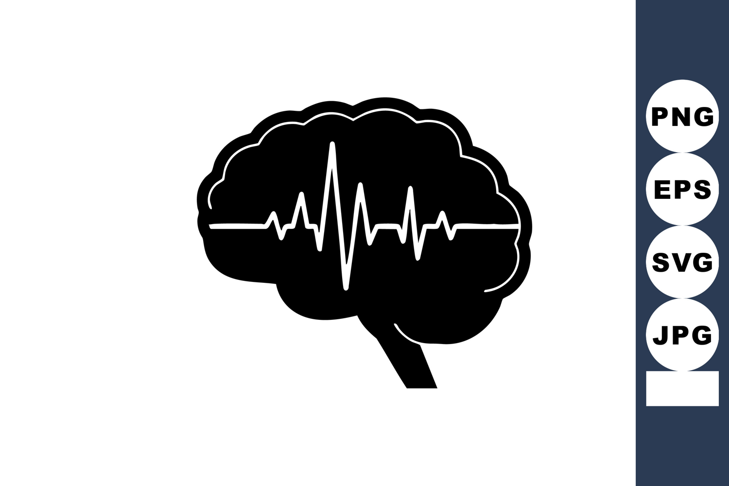 A black silhouette of a brain features a heartbeat pulse line running through it symbolizing mental activity and health awareness in a modern minimalist style. Edgy design.