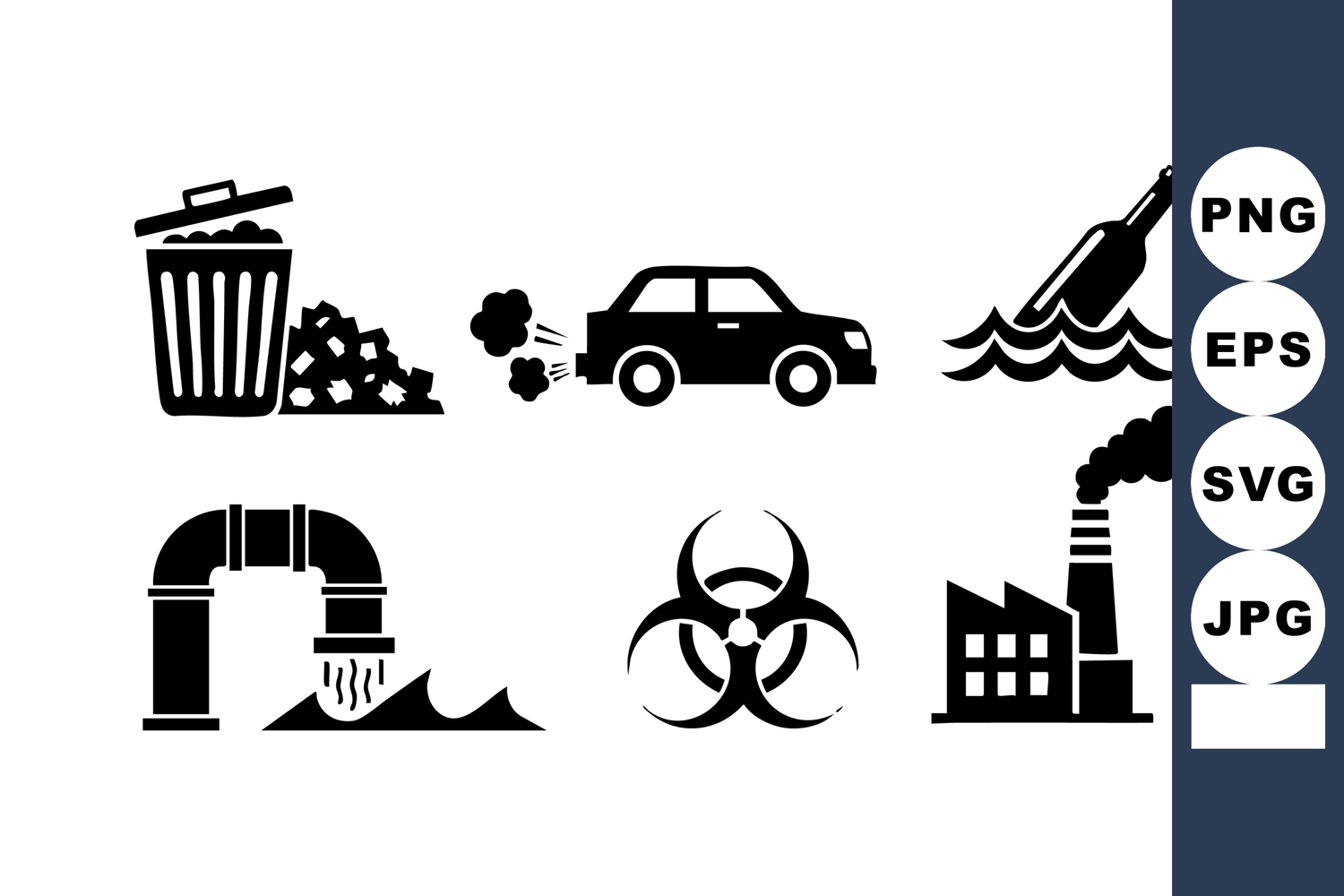 Pollution Icons Set Waste Car Bottle Pipe example image 1