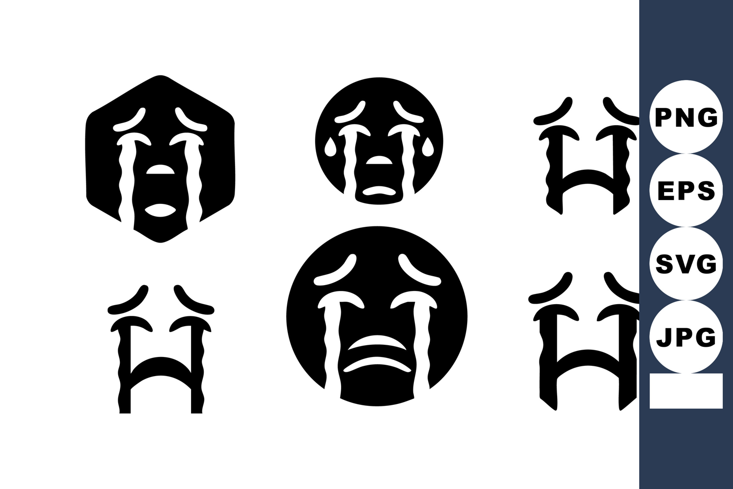Simple Vector Design Black Silhouette Style Crying Face Emoticons Flowing Tears Sad Sad Expressions Emoticons Emotional Distress Sorrow Digital Communication Icon Graphic Design Usage Tearful Face Emoji Unhappy Crying Face