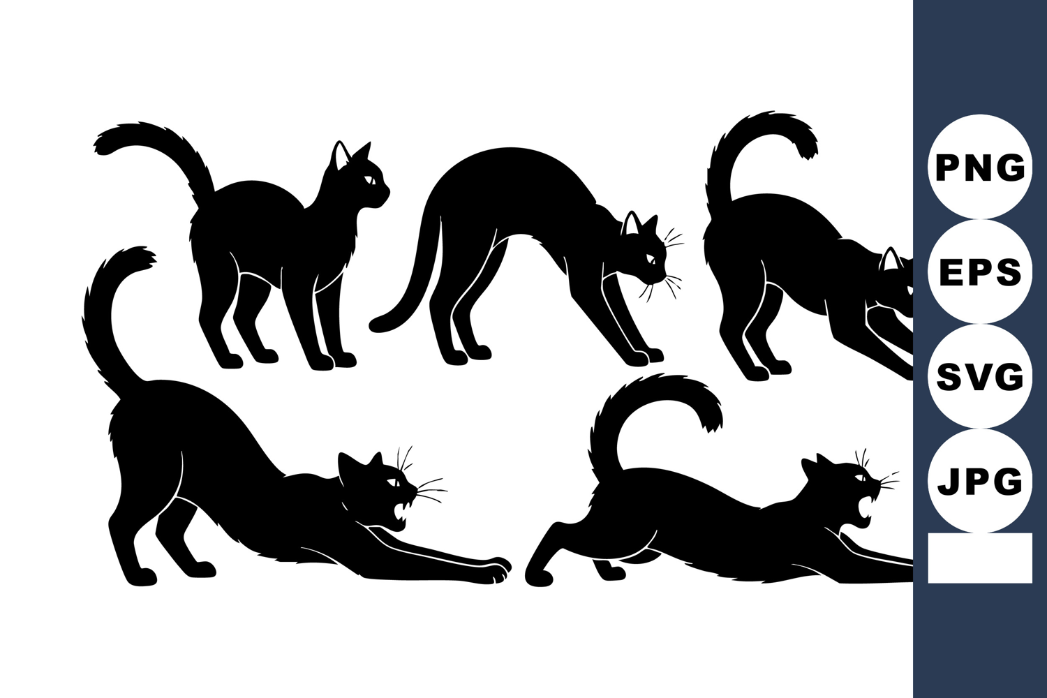 Black Cat Silhouettes Cat Silhouette Vector Playful Cat Vector Cat Stretching Pose Walking Cat Silhouette Black Feline Poses Energetic Cat Design Flat Style Cat Simple Cat Illustration Cat Tail Silhouette