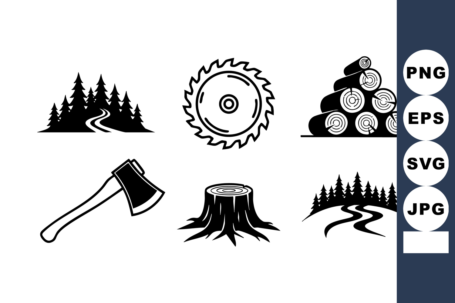 Black Forest Silhouette Axe Stump Logs Vector example image 1