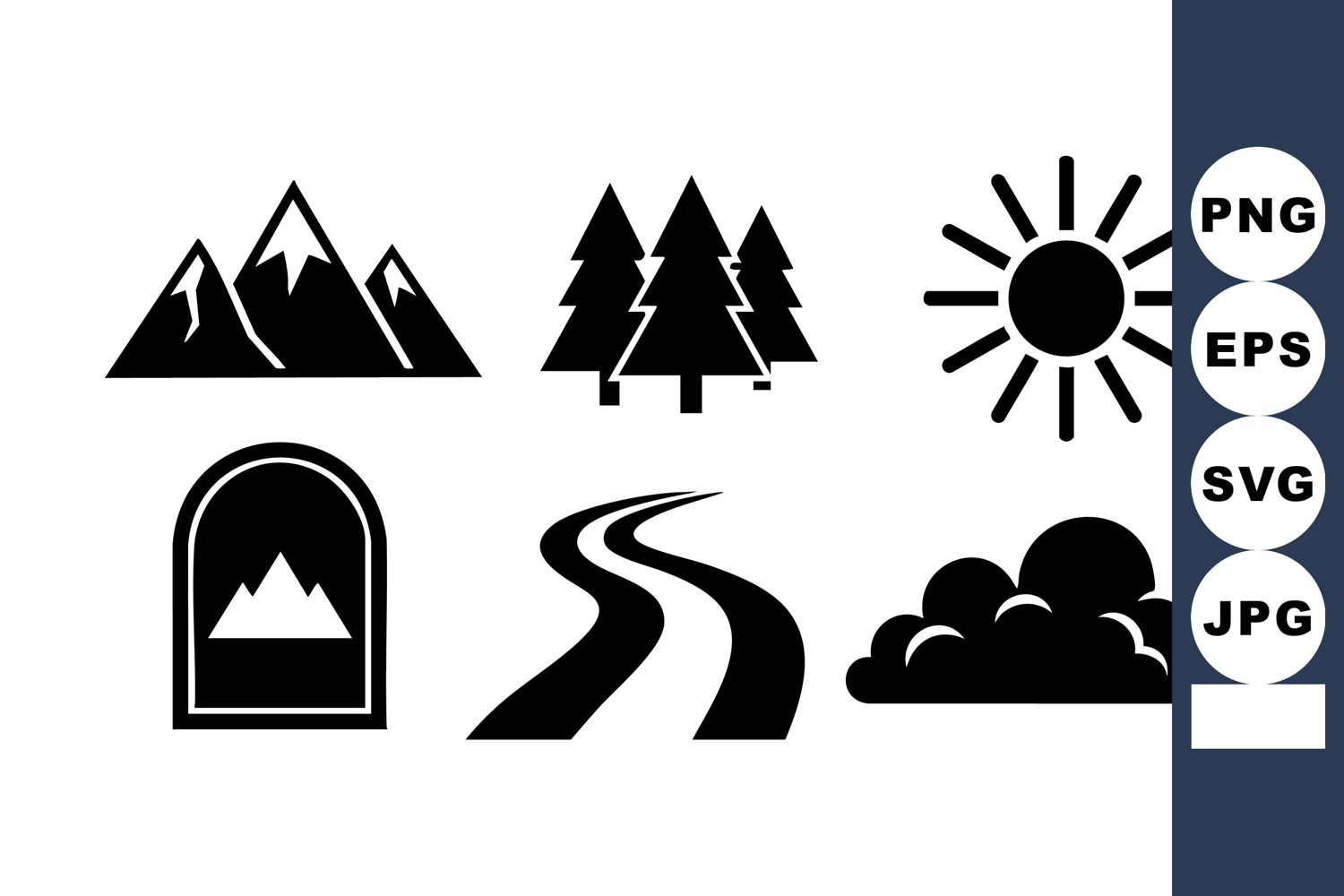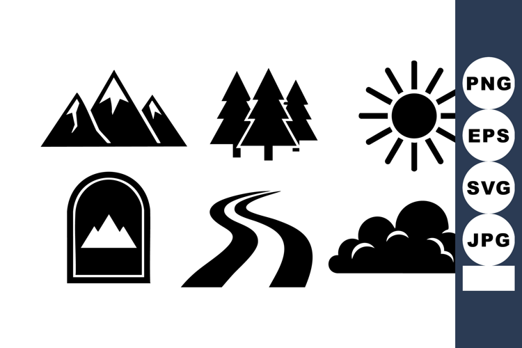 Similar Design Products to Mountain Forest Sun Road Cloud Black Icons Vector