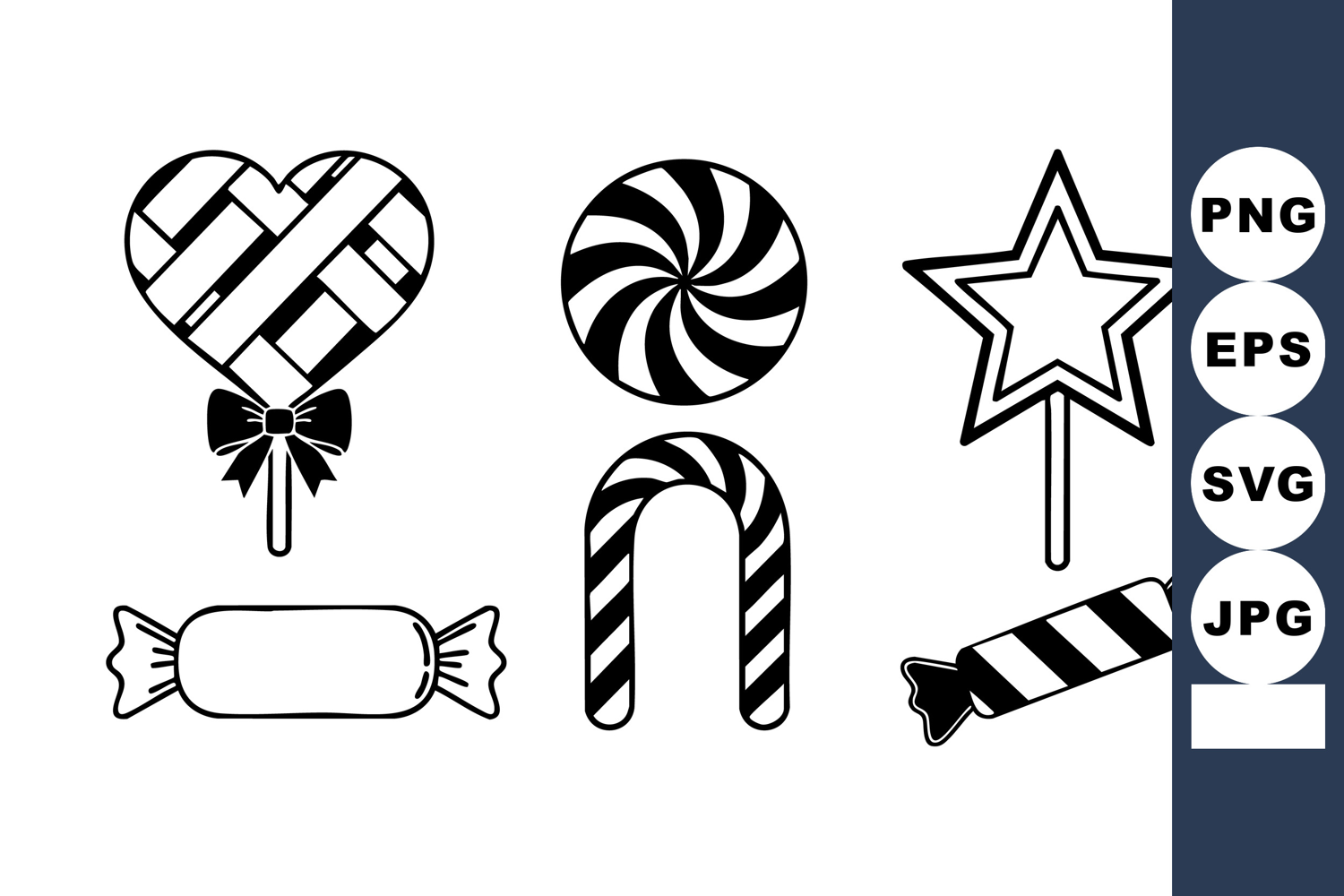 Black White Candy Heart Shaped Lollipop Star Shaped Lollipop Striped Wrapped Sweets Bold Candy Icons Festive Candy Design Playful Candy Icons Simple Candy Design Candy Stick Swirl Holiday Candy Treats