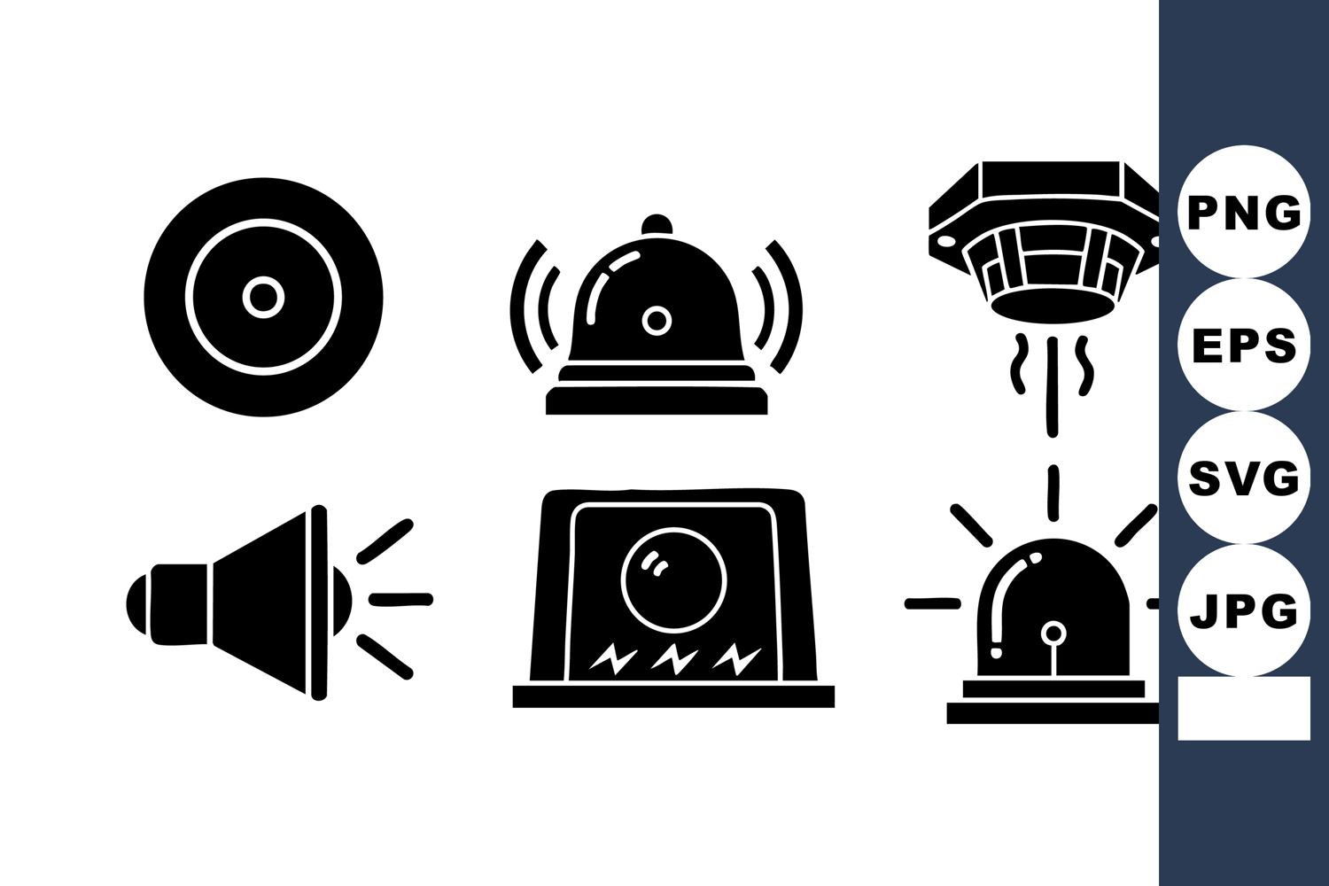 Emergency Alert Signal Security Alarm Icons Black Alarm Icon Smoke Detector Icon Warning Signal Icon Fire Alarm Device Alarm Siren Bell Safety System Alert Protection System Device Danger Alert Icon