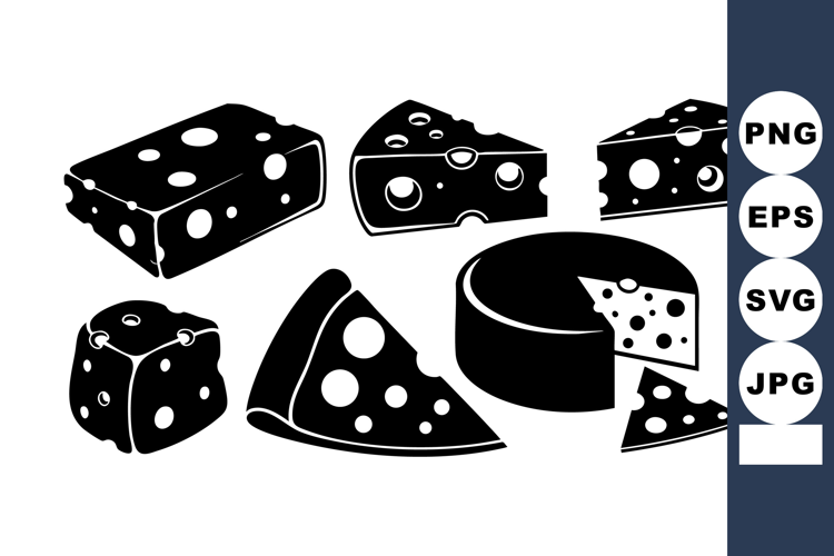 Black Silhouette Cheese Assortment Vector Illustration example image 1