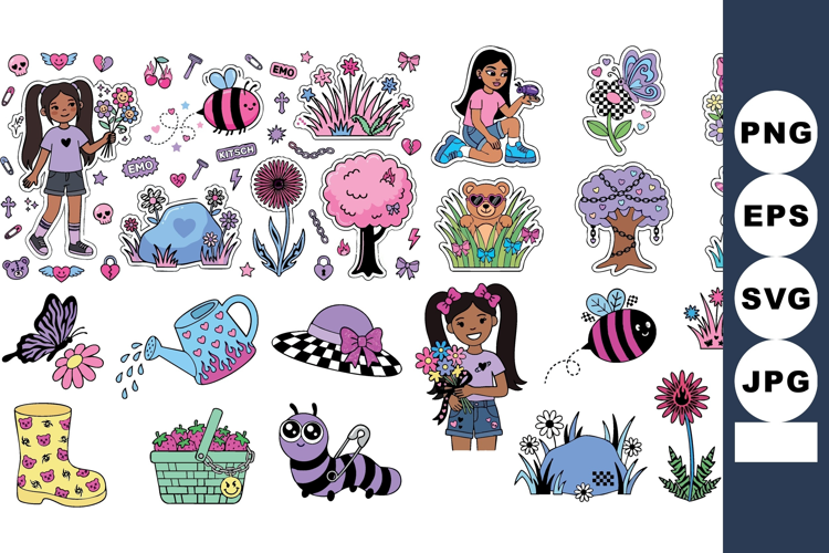 Similar Design Products to Cheerful Girls Playing With Garden Insects And Flowers