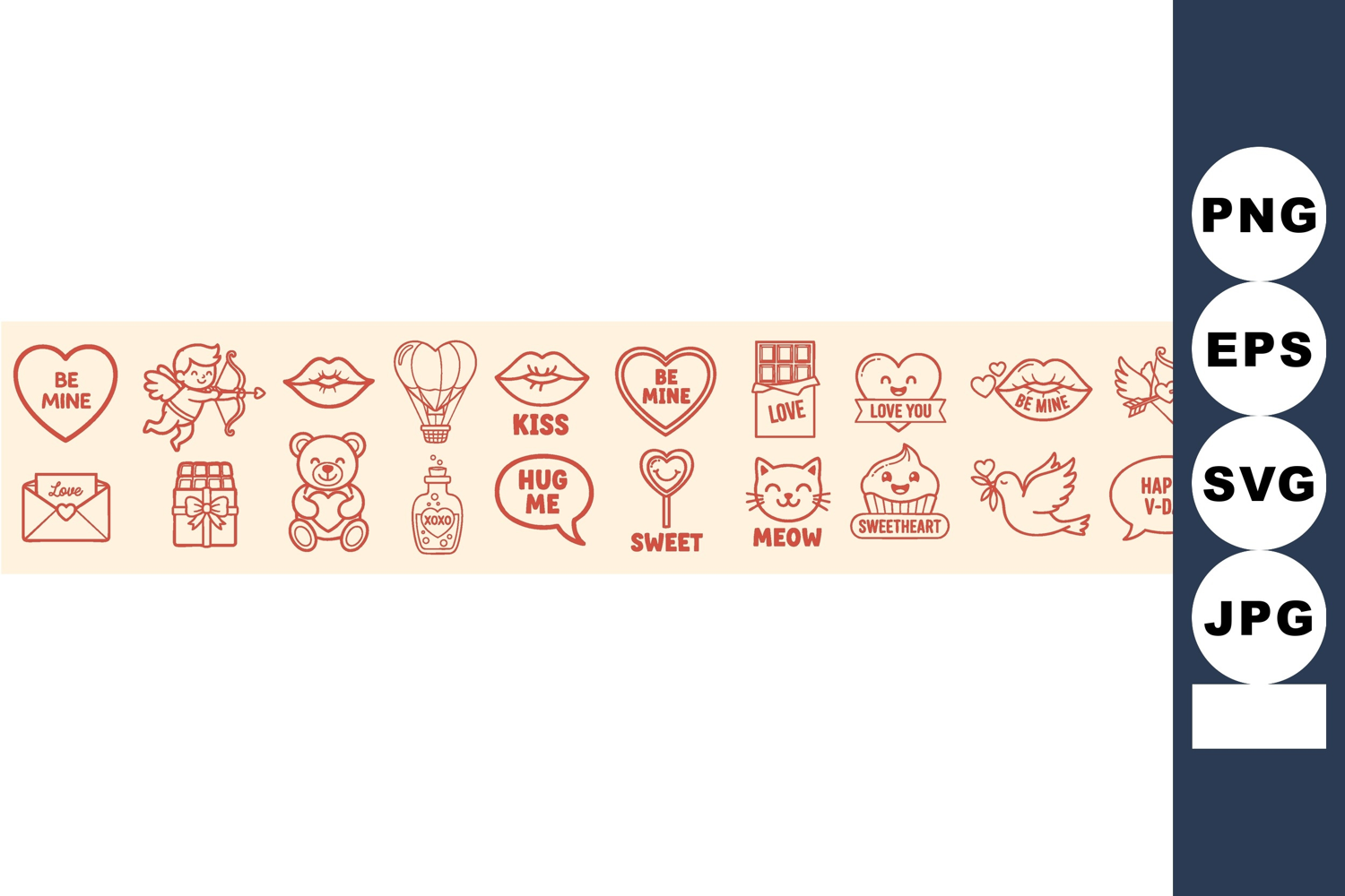This vector set showcases a delightful array of Valentines Day icons, including romantic elements such as hearts, cupid, teddy bears, and love letters, rendered in a charming flat design style suitable for greeting cards, stickers, and web decorations.
