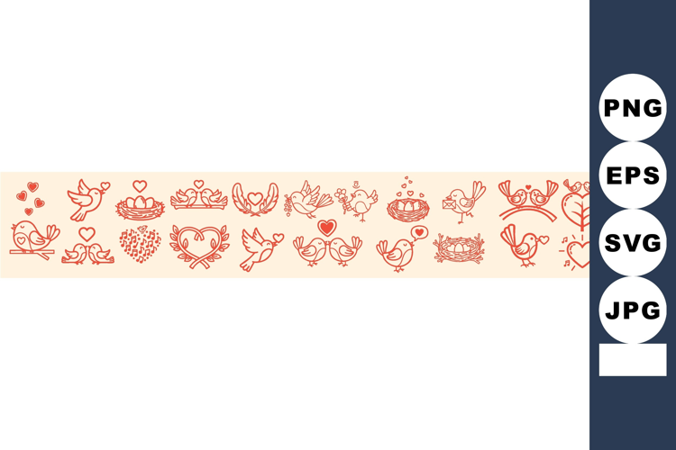 Romantic Birds Hearts Flowers Art example image 1
