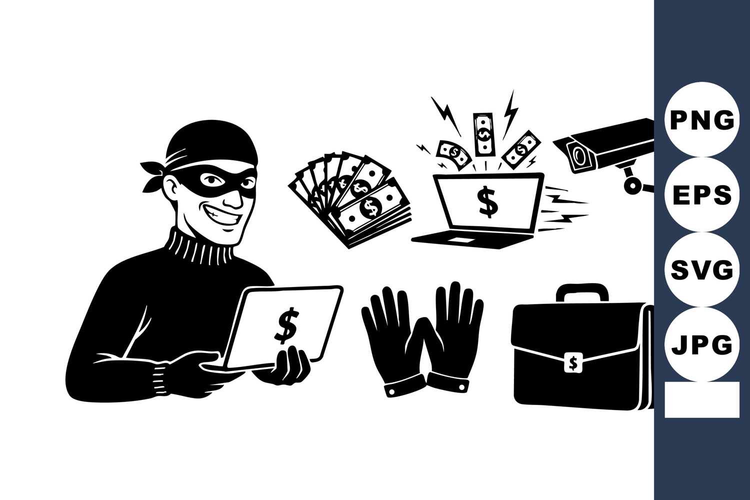 Monochrome Cyber Thief Banking Crime Icons example image 1