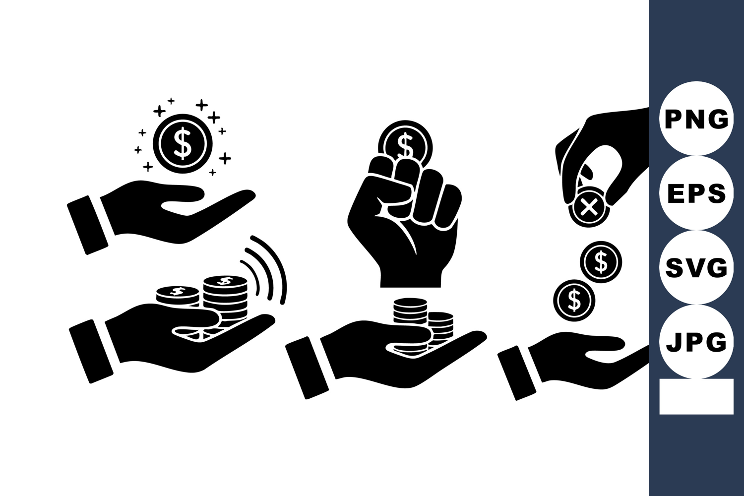Minimalist Money Hands Financial Gesture Icons Digital Payment Illustration Charity Donation Symbols Coin Saving Gesture Wireless Money Transfer Flat Design Finance Business Economy Funds Stacked Money Coins Mobile Wallet Payment