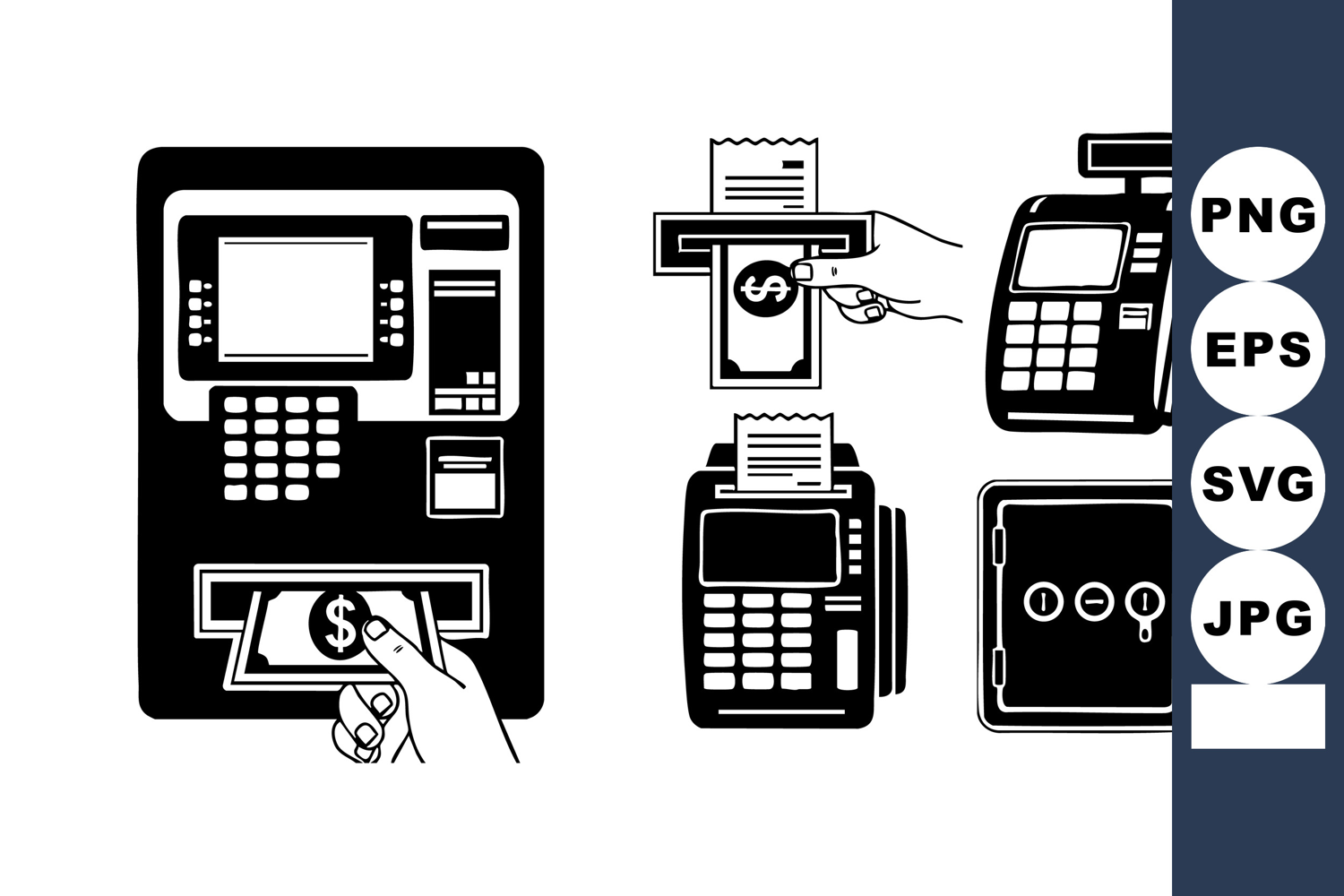 Minimalist Flat Banking Icons ATM Cash Receipt Terminal Safe