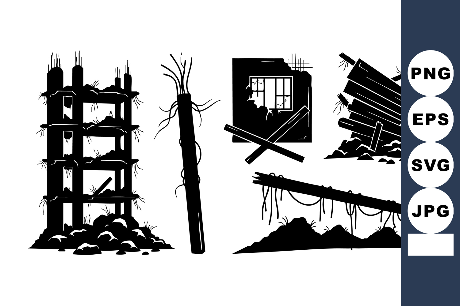 Similar Design Products to Ruined Reinforced Concrete Silhouette Vectors