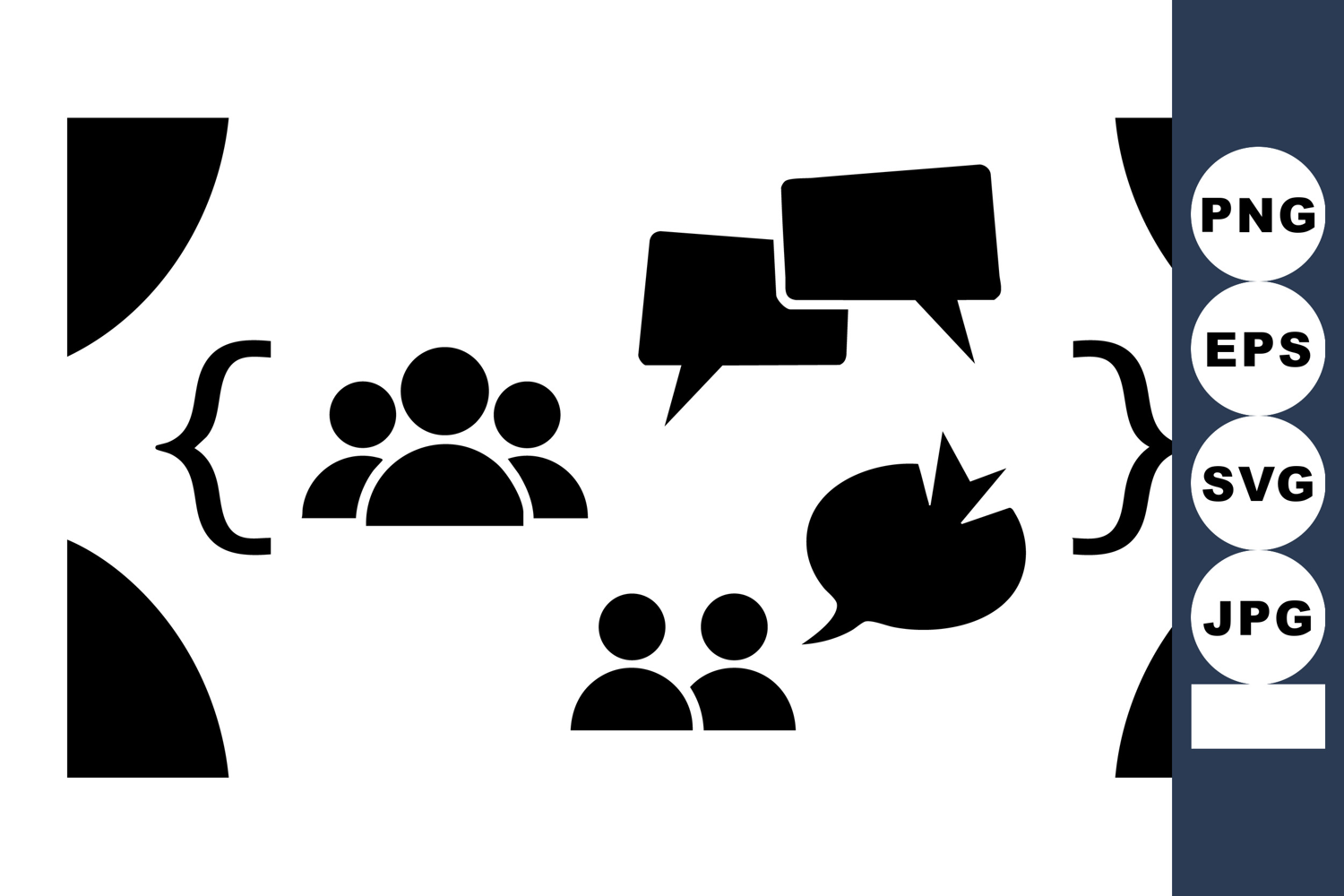 Flat Design Icons Speech Bubble Icons Black White Geometric Vector Illustration Icons Group People Icons Minimalist Flat Icons People Chat Icons Conversation Collaboration Icons Web Ux Ui Interface Layout Design