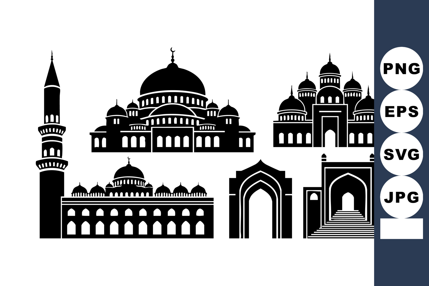 Minimal Mosque Silhouette Vectors for Ramadan