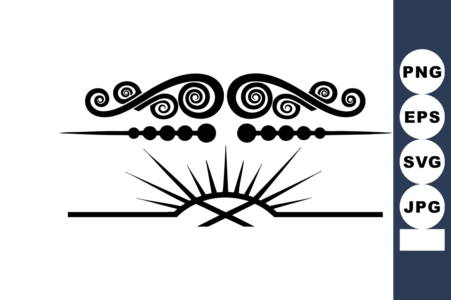 Ornamental Line Divider Swirl Border Ornament Sunburst Line Divider Decorative Page Separator Tattoo Stencil Design Black Vector Divider Minimalist Tattoo Style Horizontal Page Separator Dotted Spear Line Stylized Sunburst Line