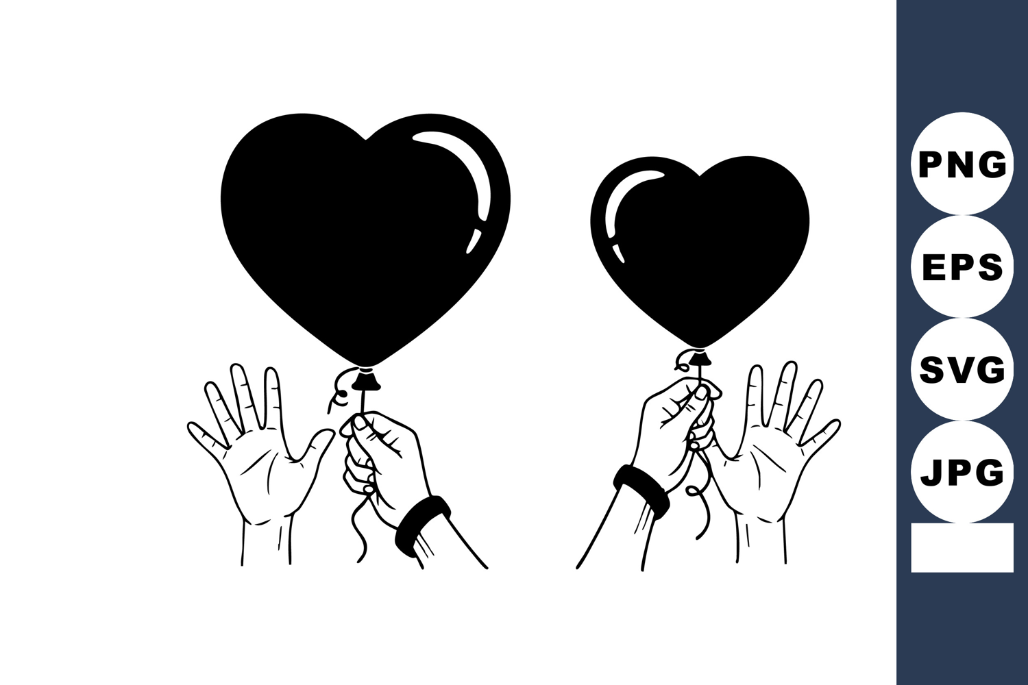 Valentine Love Design Minimal Black Heart Hands Holding Balloons Romantic Gesture Illustration Couple Relationship Art Monochrome Line Drawing Floating Heart Clipart Anniversary Card Graphic Modern Romantic Poster Simple Love Symbol