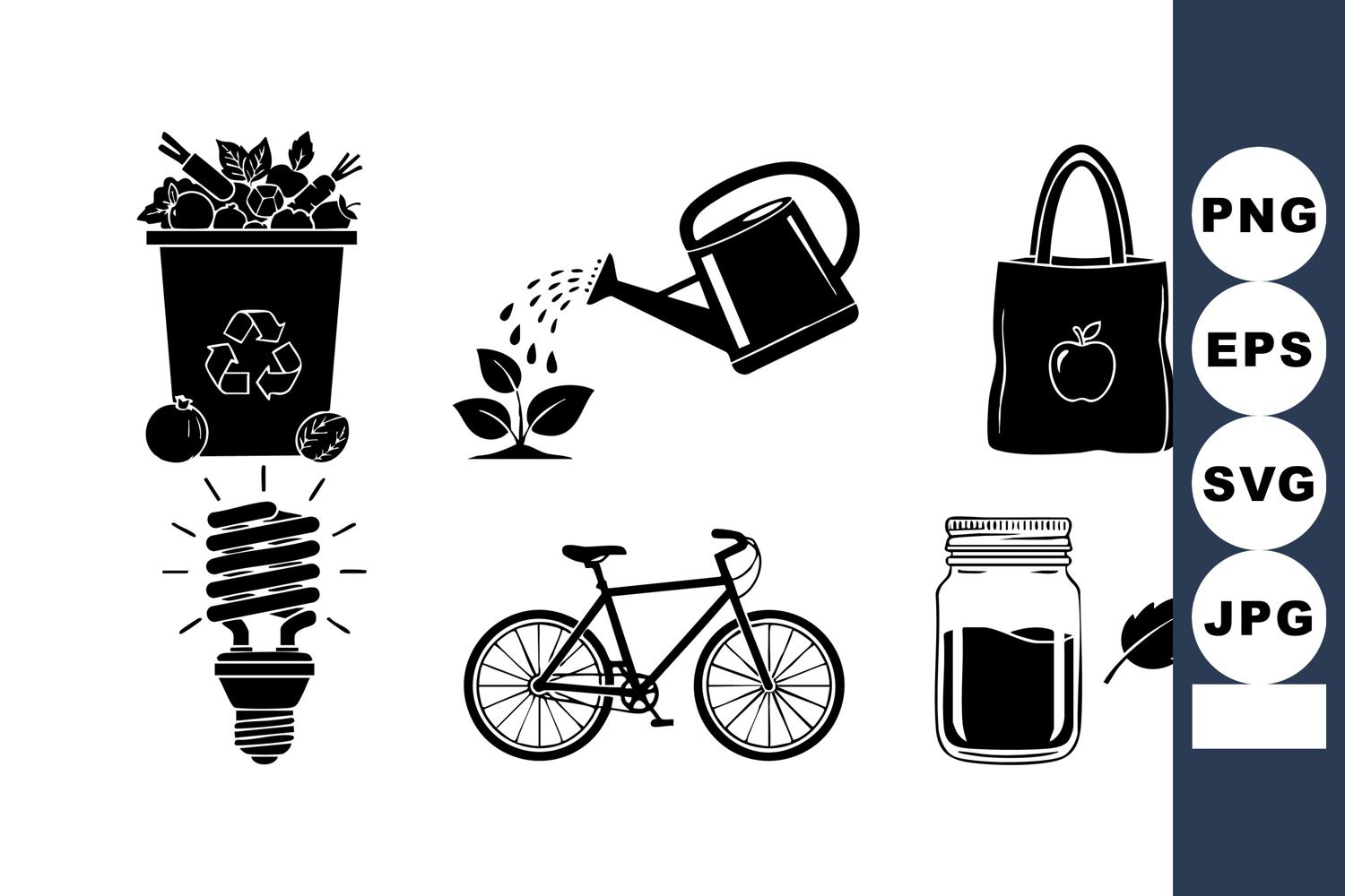 Similar Design Products to Minimalist Black Eco Sustainability Icon Set