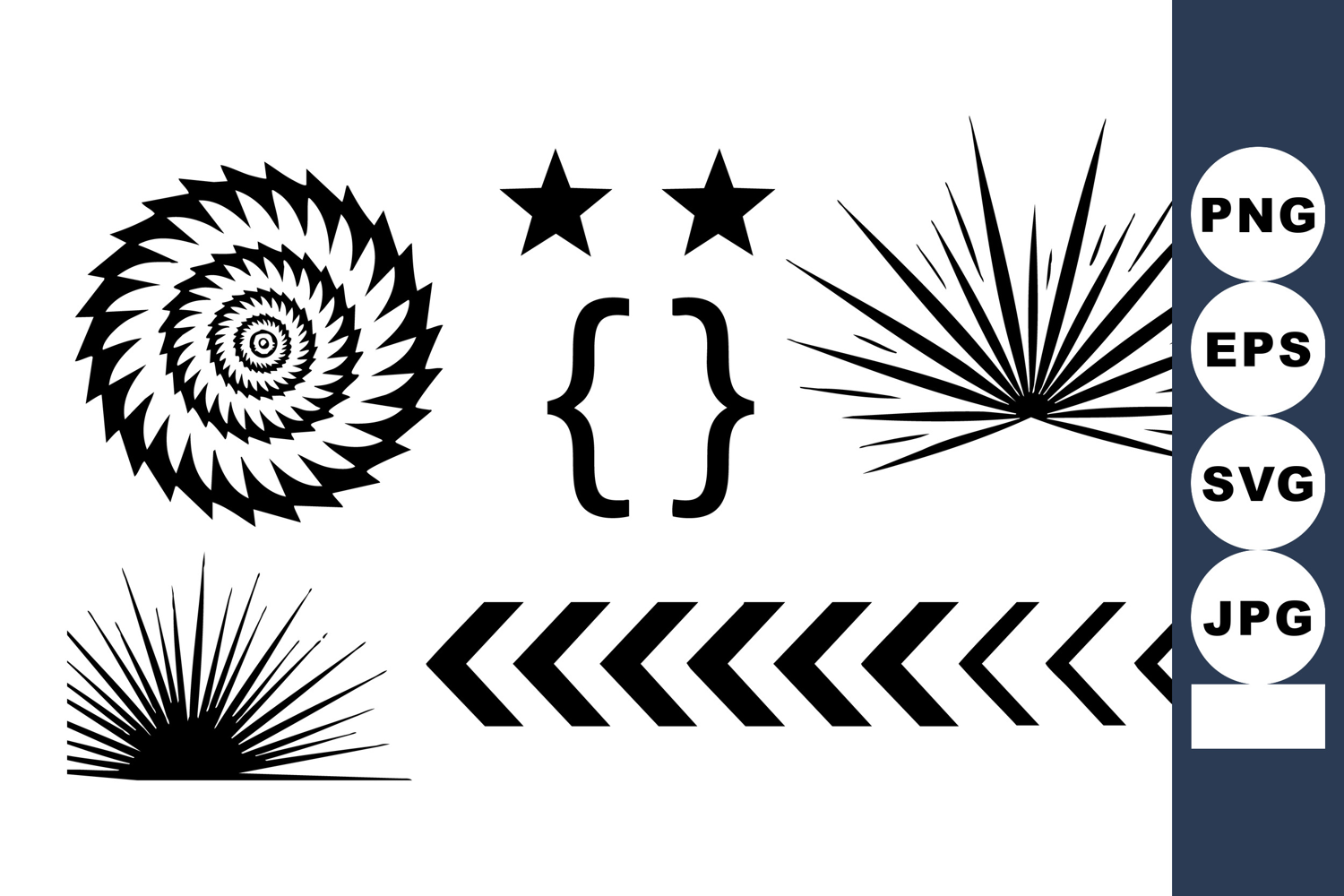 Bold Geometric Shapes Minimalist Black Vector Spiral Burst Element Hypnotic Spiral Burst Chevron Arrow Set Curly Brace Icon Radial Sun Rays Black Star Elements Flat Modern Design Poster Layout Accents