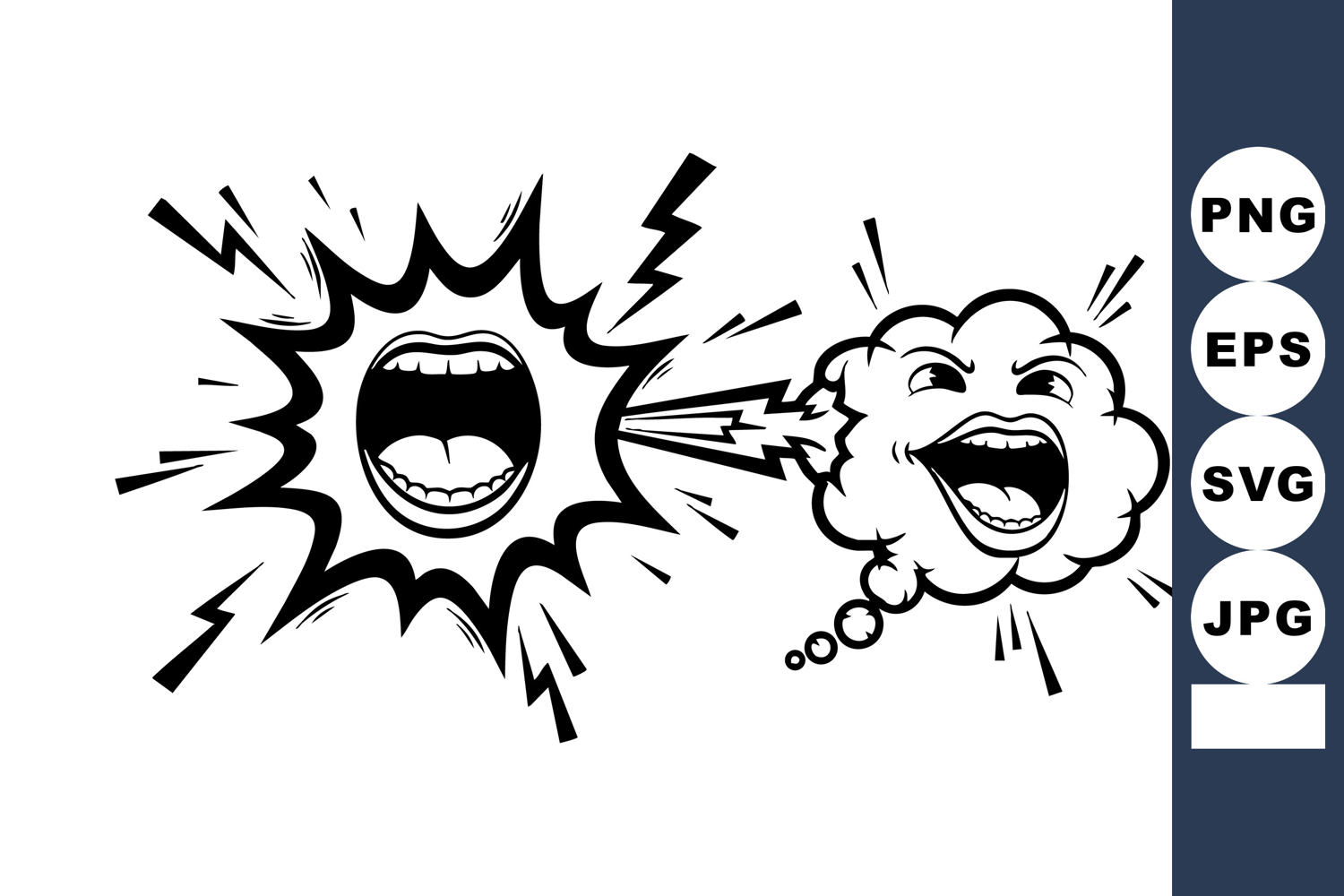 Black White Vector Speech Bubble Explosion Retro Comic Style Comic Shouting Mouth Angry Shouting Mouth Comic Argument Energy Intense Scream Expression Dynamic Comic Explosion Bold Comic Illustration Emotive Cartoon Mouth