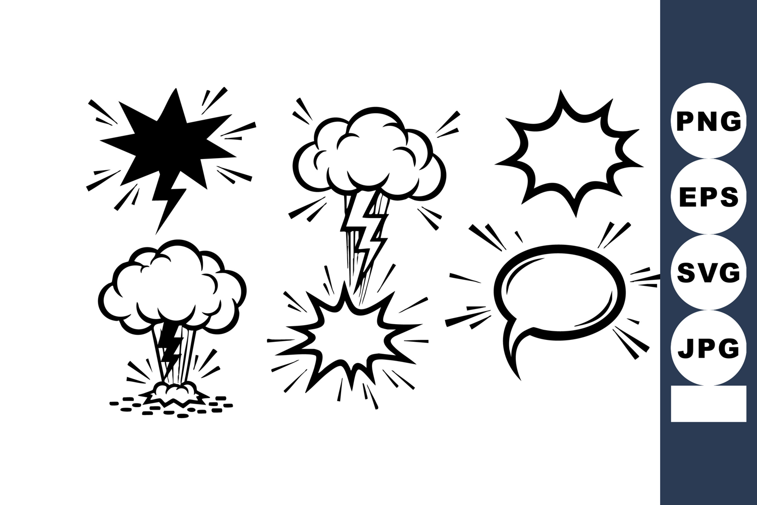 Comic Speech Bubbles Manga Action Effects Retro Comic Style Comic Explosion Icons Black White Explosions Lightning Cloud Blast Starburst Comic Bursts Radial Energy Lines Dynamic Graphic Elements Web Comic Graphics