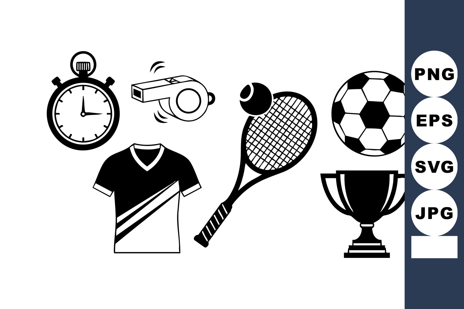 Tennis Racket Icon Black White Icons Trophy Cup Icon Flat Sports Icons Monochrome Flat Icons Sports Icon Set Minimal Sports Icons Stopwatch Timing Icon Referee Whistle Icon Football Soccer Icon