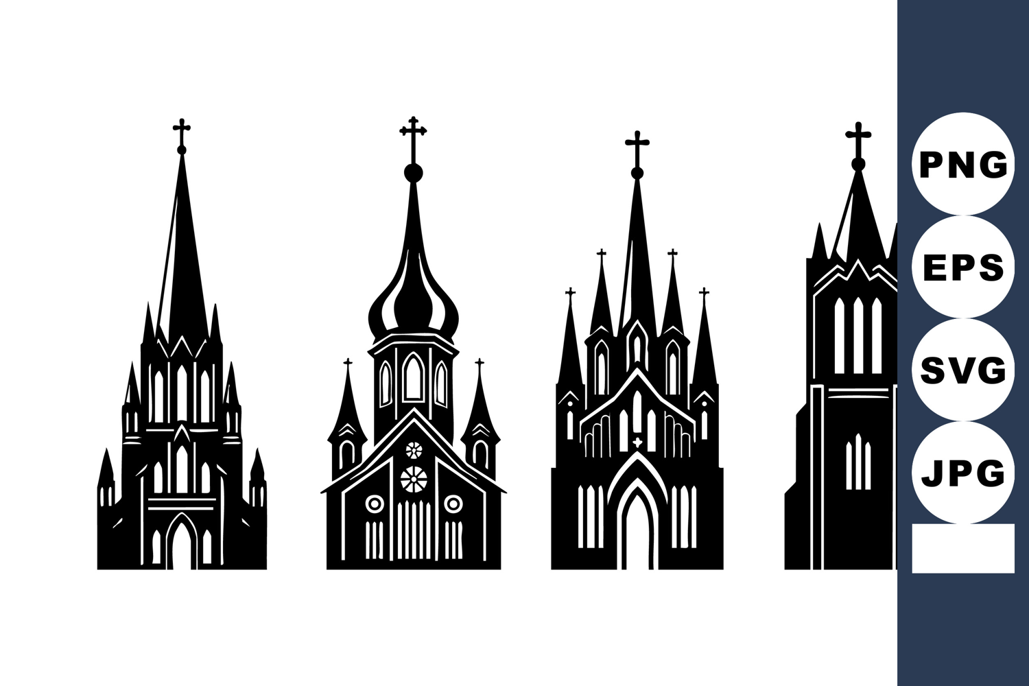 Four Gothic Church Tower Vector Silhouettes for Logos