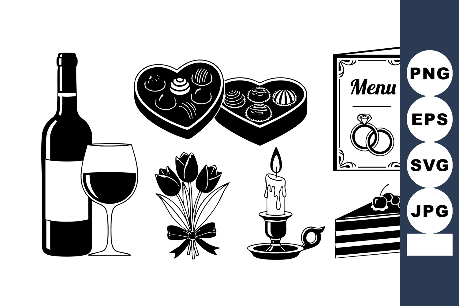 Romantic Black White Valentine Dinner Icons example image 1