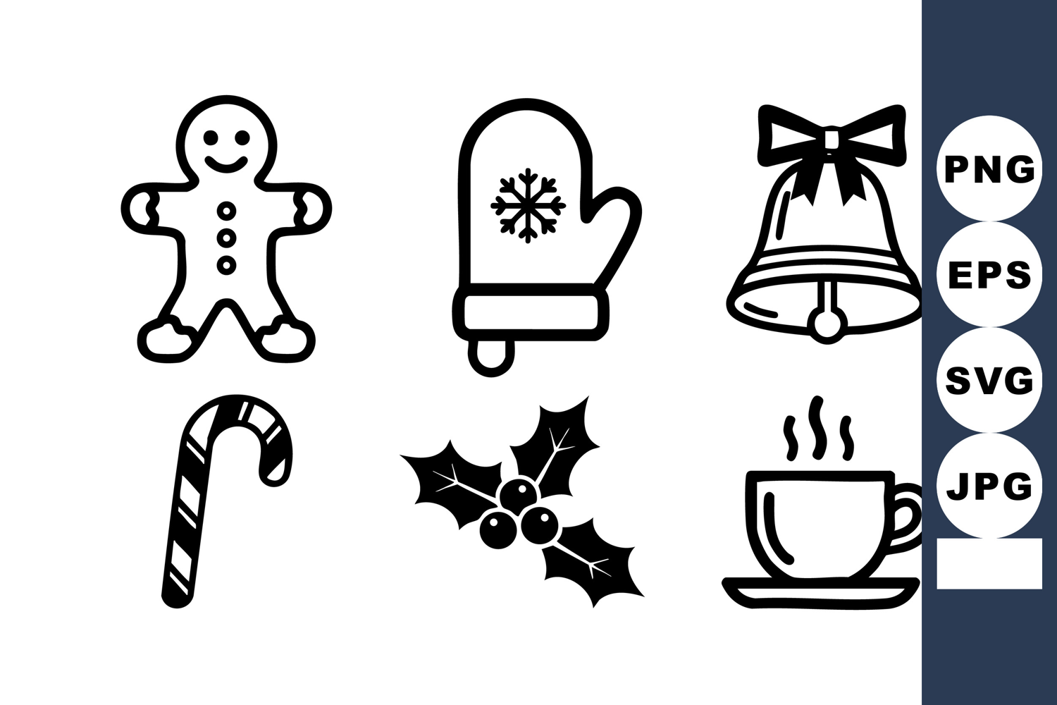 Christmas Icon Set Gingerbread Man Icon Candy Cane Icon Black Outline Icons Steaming Coffee Mug Minimal Line Icons Winter Mitten Icon Jingle Bell Icon Holly Leaves Icon Greeting Card Icons